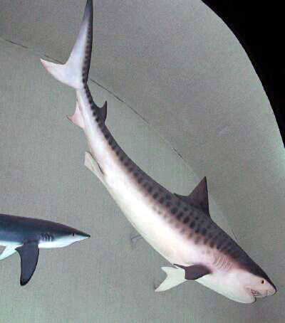 In Treason's Harbor, the Captain and the Doctor and their crew have a bad experience, when they lose a passenger to a tiger shark (Galeocerdo cuvier, length up to 20 feet). This is one of the most dangerous sharks in tropical waters, a proven man-eater. It is also known as "the garbage can with fins", as it will eat anything: tires, bags, animals, carrion, etc. Their common name comes from their obvious stripes.